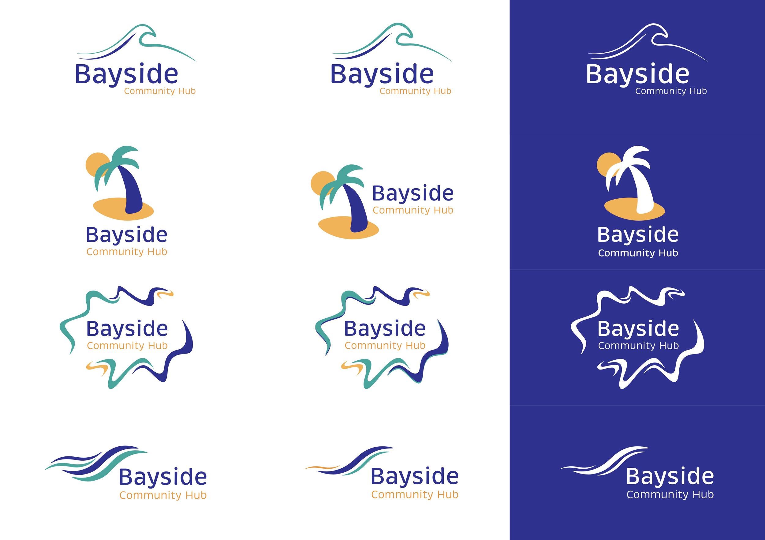 From here we began crafting a variety of logo variations. We explored a variety of typeface options, as the client had been clear they wanted the logo to include the business name. We settled on a rounded sans-serif, as we felt this embodied the open hearted nature of Bayside, as well as being visually clean and professional.